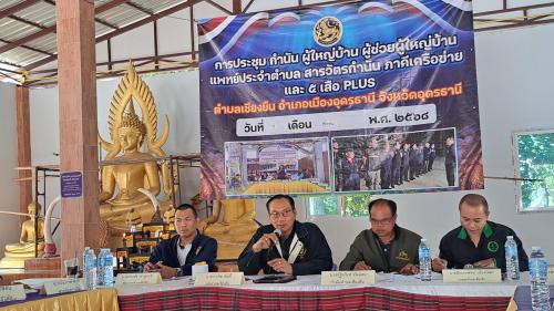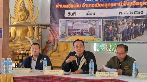 วันพุธที่ 17 ธันวาคม 2568 เวลา 09.30 น. ณ ศาลาการเปรียญ วัดประชาราษฎร์บำรุง หมู่ที่ 12 ตำบลเชียงยืนอำเภอเมืองอุดรธานี จังหวัดอุดรธานี นายชวิศ ป้องขันธ์ นายอำเภอเมืองอุดรธานี มอบหมายให้นายภาวัฒ ขันตี ปลัดอำเภอประจำตำบลเชียงยืน ผู้อำนวยการโรงพยาบาลส่งเสริมสุขภาพตำบล เกษตรตำบล นายกองค์การบริหารส่วนตำบลนากว้างกำนันตำบลนากว้างผู้นำฝ่ายปกครองตำบลเชียงยืน ประชุมภาคีเครือข่ายตำบลเชียงยืนทีม 5 เสือ พลัส ตำบลเชียงยืนอุดรโมเดล ประจำเดือนธันวาคม 2568 เพื่อแจ้งข้อราชการนโยบายของกระทรวง ทบวง กรม จังหวัด และอำเภอ หารือข้อราชการ และรับฟังปัญหาอุปสรรคในการปฏิบัติหน้าที่ จากทุกภาคส่วนตลอดจนซักซ้อมแนวทางปฏิบัติงานสำคัญเร่งด่วน ขับเคลื่อนติดตามนโยบายยุทธศาสตร์แก้ไขปัญหายาเสพติดของอำเภอเมืองอุดรธานี และจังหวัดอย่างครบวงจร(อุดรโมเดล) เน้นย้ำความสำคัญของทีม 5 เสือพลัส ชุดปฏิบัติการคุ้ม ชุดรักษาความปลอดภัยหมู่บ้าน การเฝ้าระวังผู้ป่วยจิตเวช รวมถึงประชุมหารือแนวทางการป้องกันและแก้ไขปัญหาอุทกภัยในเขตพื้นที่ตำบลนากว้างในการนี้นายสฤษดิ์ อินทสิทธิ์ พัฒนาการอำเภอเมืองอุดรธานี มอบหมายให้นายทรงชัย ชาญเดช เจ้าพนักงานพัฒนาชุมชนชำนาญงาน (พัฒนากรประจำตำบล) เข้าร่วมประชุมในครั้งนี้ด้วย